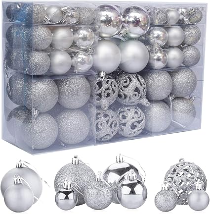 Victors Workshop Palline Di Natale 90 Pezzi Set Di Palline Di Natale Decorazioni In Plastica Per Albero Di Natale Decorazioni Natalizie Celebrazioni Decorazioni Argento Bianco Palle E Palline Casa E Cucina