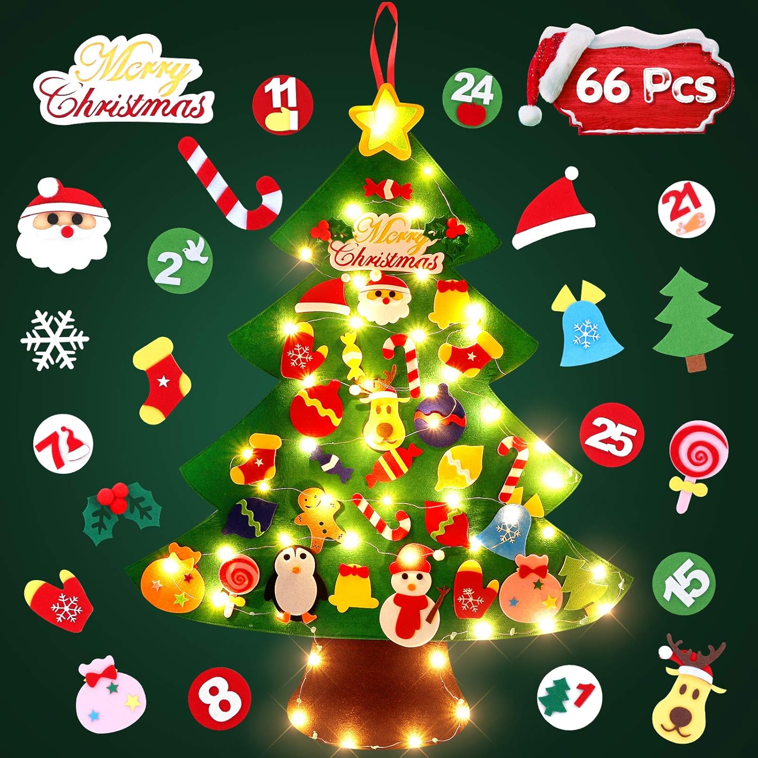 Soledi 66 Pezzi Addobbi Natalizi Albero Di Natale In Feltro Per Bambini Con Led Natale Albero Perfetto Per La Cameretta Piatto Da Appendere Occupa Poco Spazio Regali Natale Nuovo Anno Dei Bambini