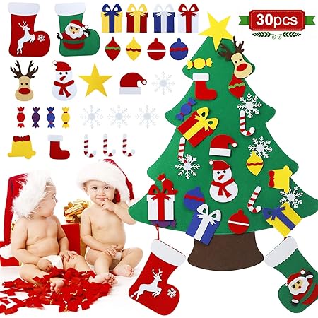 Extsud Albero Di Natale In Feltro Fai Da Te Con 25 Pz Ornamenti Staccabili Calze Natalizie Addobbi Natalizi Per Negozi Casa Accessori Decorazioni Natalizie A Parete Natale Albero Feltro Bambini Amazon It Casa