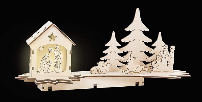 Small Foot Company Lampada Forma Di Stella Cadente Presepe Scolpito In Legno Naturale Con Illuminazione A Led Decorazione Natalizia Con I Tre Re Magi Natura Amazon It Illuminazione