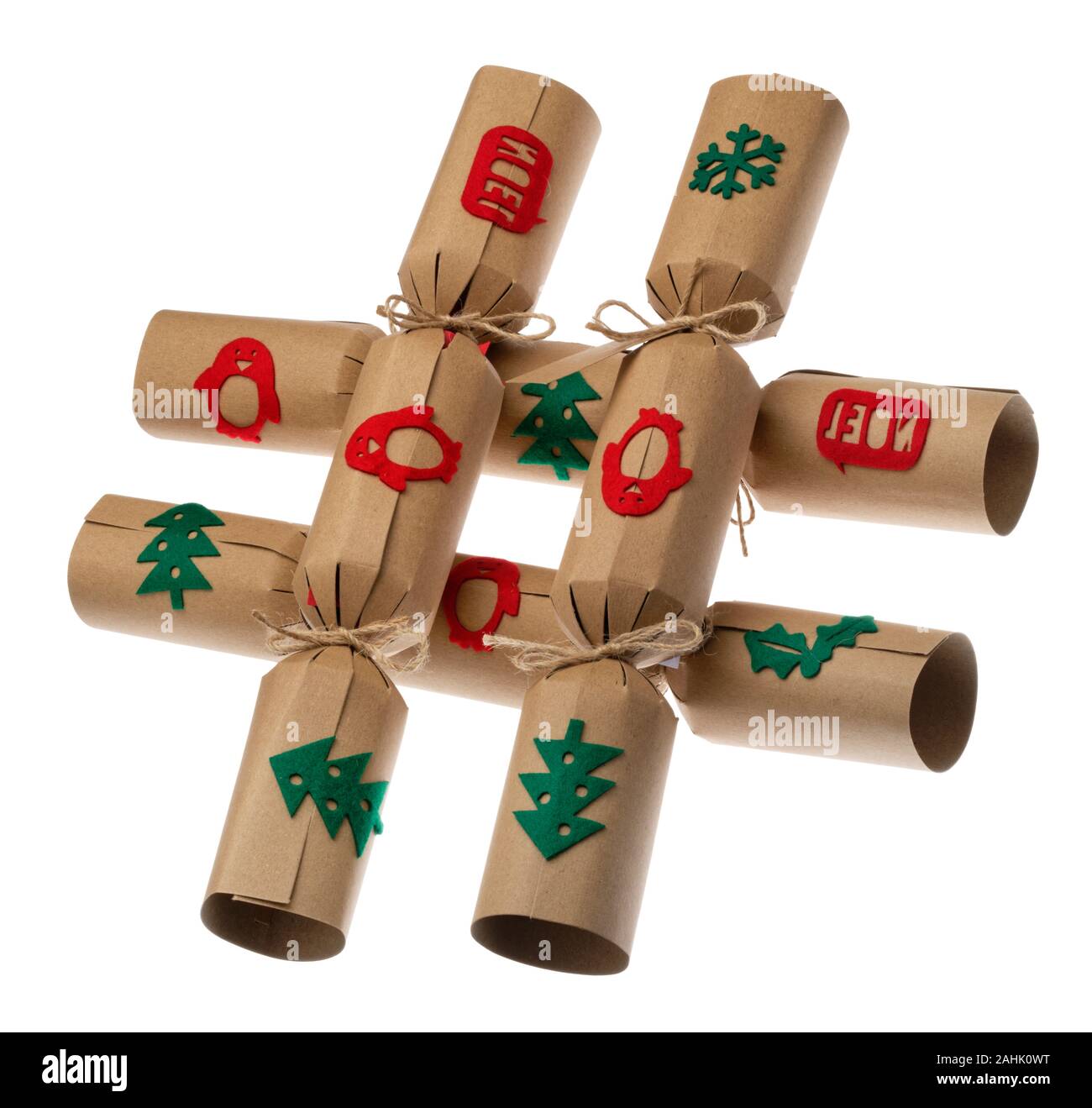 Hashtag Natale In Casa Xmas Cracker Per La Festosa Tavola Christmas Cracker Con Presente Scherzo E Cappello Di Carta Inclusi Tag Di Metadati Foto Stock Alamy