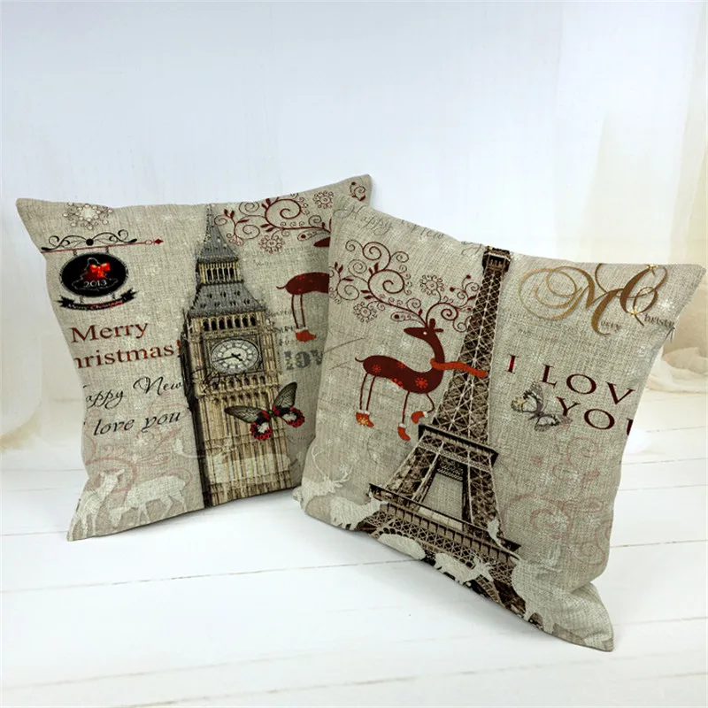 Christmas Pillow Case Cotton Linen Sofa Throw Cushion Cover Home Decor Xmas Gift Idee