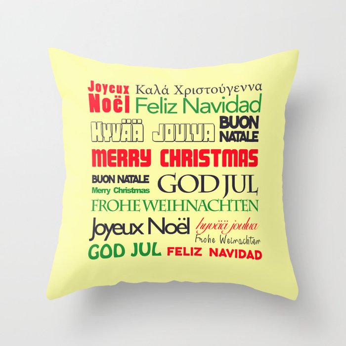 Merry Christmas In Different Languages I Throw Pillow By Carmenjc Society6