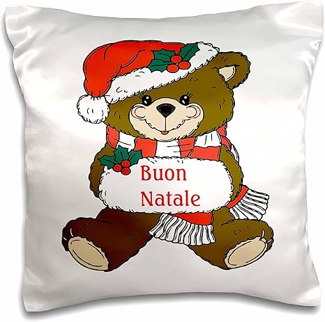 Amazon Com 3d Rose Image Of Buon Natale Italian Christmas Teddy Bear Pillow Case 16 X 16 Home Kitchen
