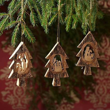 Kassis Set Di 3 Decorazioni Natalizie In Legno D Ulivo Per Presepe In Albero Di Natale